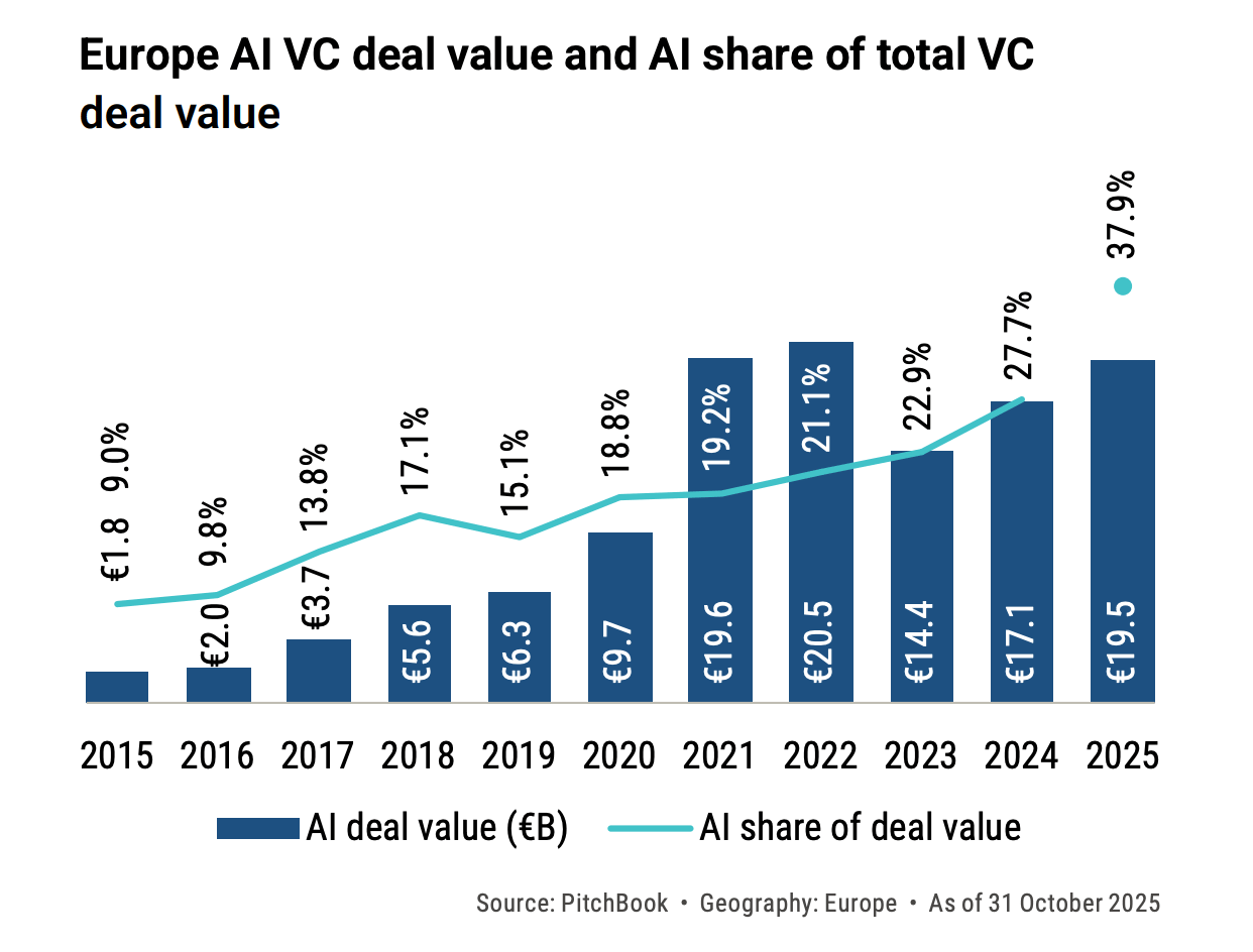 📝 Quiz: What % of VC deal value in EMEA has gone to AI rounds in 2025?